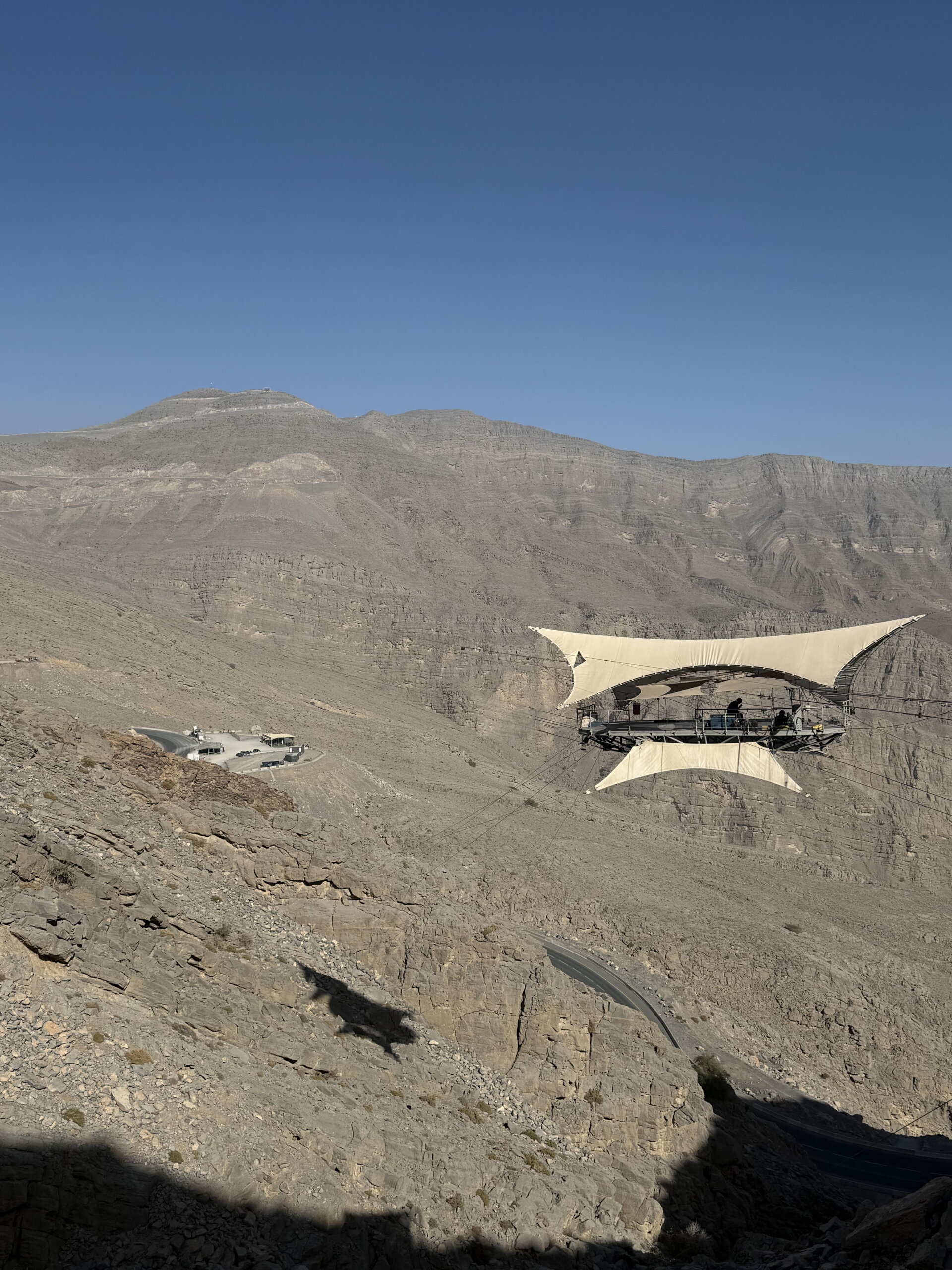 Once you arrive, you have a safety briefing, and the friendly and professional staff help you into your harness and safety gear—making sure everything is secure. It’s then off the flight deck, and after a short nervous wait, the NInja was launched off the top of Jebel Jais mountain!!!!